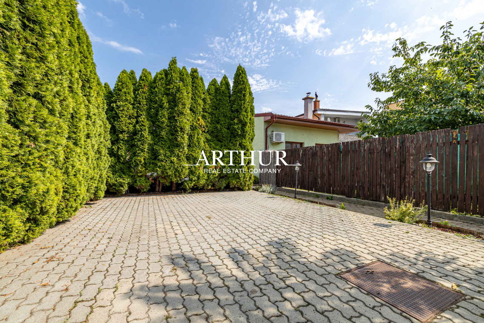 Vybavenie domu: plastové okná, v izbách na podlahe plávajúca podlaha, na ostatnej ploche dlažba, v kúpeľni menená sanita, obklady a dlažby v kúpeľni, WC, v chodbách rolldor skrine, dom je vybavený alarmom, klimatizáciou, videovrátnikom, vchodová brána na diaľkové ovládanie, dom je kompletne zariadený kancelárskym aj bytovým nábytkom,